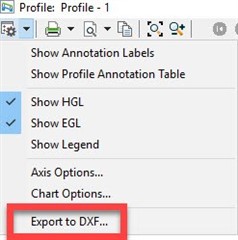 The captured profile can then be pasted directly in a report or saved as an image for future use. The profile can also be exported as a DXF if it needs to be included as a drawing to a report. The "Export to DXF" option appears in the pulldown menu by clicking on the Chart Settings in the top left corner of the window.