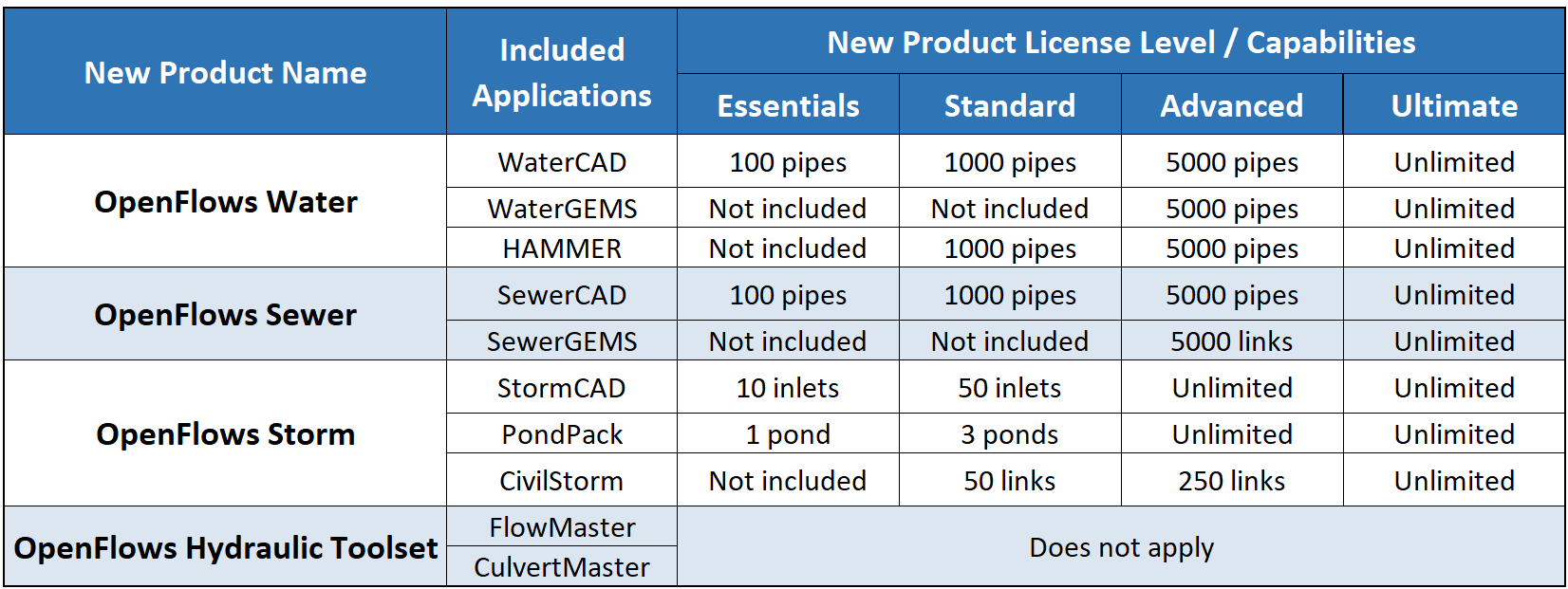 Additional information can also be found here: Simplification of Bentley's Water Software Licenses
