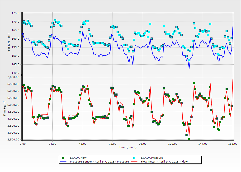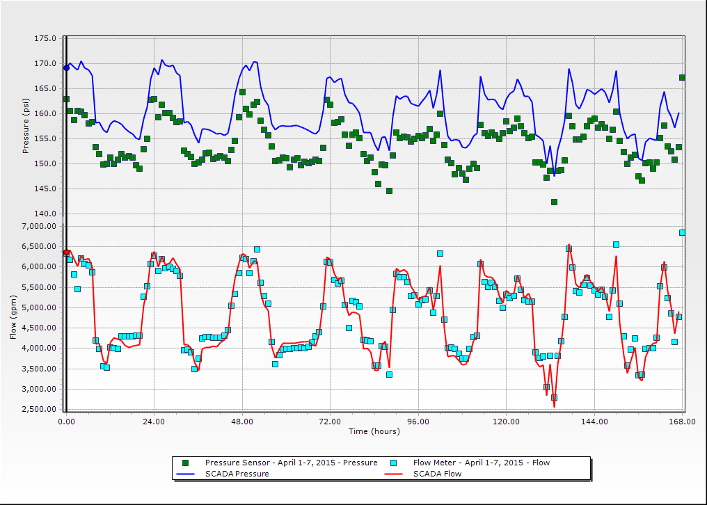 For example, when the graph is opened the first time the time series field data is displayed as points and the calculated data is displayed as lines: