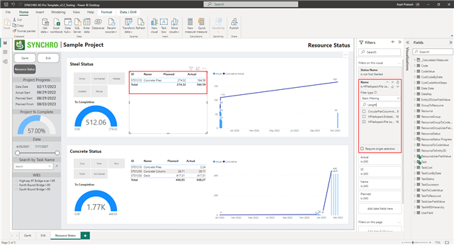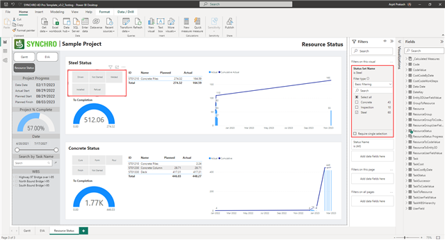 To update Resource Status categories, select the visual and select the required Status Set Name from under the Filters pane -