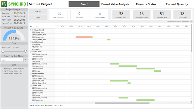 TASK(NOT STATUS == 1 AND PROPERTY("Planned Finish") > PROPERTY("Actual Finish")) ASSIGN_UF("PBI_Early/Late Finish", STRING, "Early")