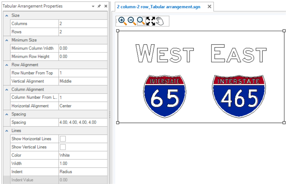 Introduction: The instructions and video below show how to create a tabular arrangement in OpenRoads SignCAD.