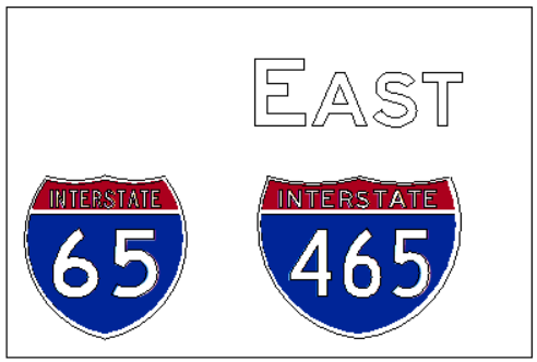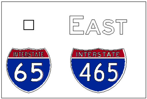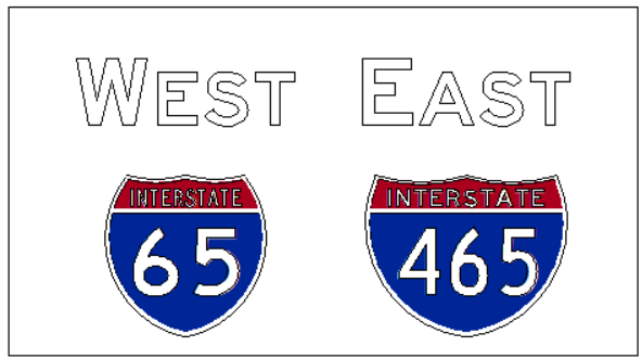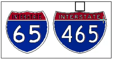 Step 4: In the Place Interstate Route Marker dialog, change the Route Number to 465. Hover the cursor over the tabular arrangement and left-click to place the I-465 shield in column 2, row 2. Close the Place Interstate Route Marker dialog.