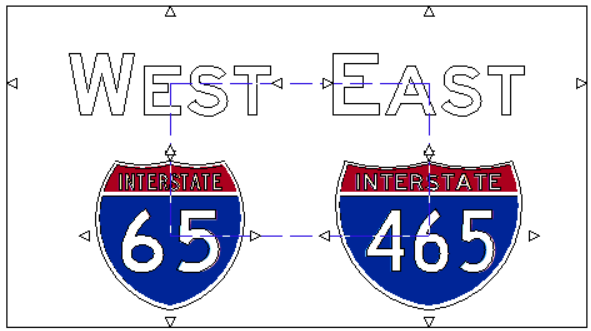 The video below shows how-to create an Interchange Crossroad sign using a tabular arrangement with 2 columns and 2 rows.
