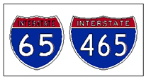 Below is a tabular arrangement with 2 columns center aligned and 2 rows middle aligned. WEST is in column 1, row 1; I-65 is in column 1, row 2; EAST is in column 2, row 1; I-465 is in column 2, row 2.