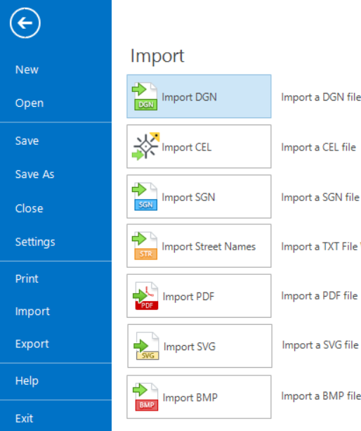 Step 1: In OpenRoads SignCAD, pick the File tab to go to the Backstage and pick Import > Import DGN.