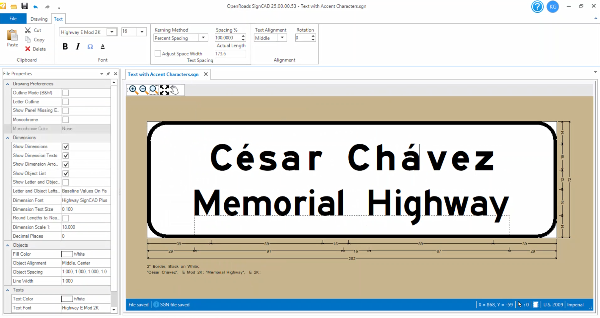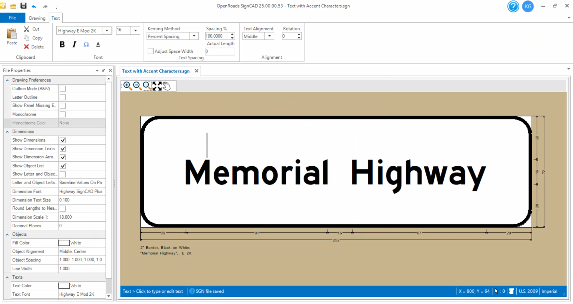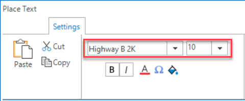 Step 1: Click on Text>Place Text. In the Place Text dialog, select the desired text font and size (ex: Font: Highway B 2K and Size: 10).