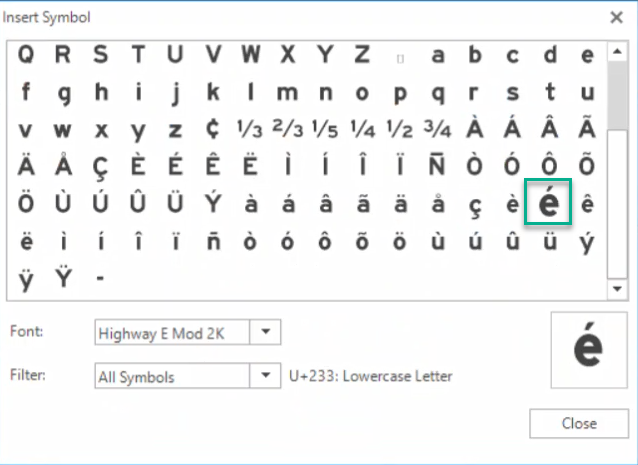 Step 6: Select the "é" symbol to place it.