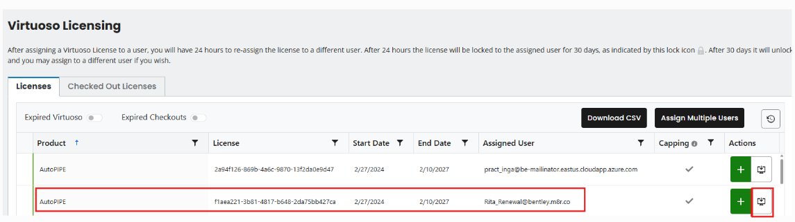 After selecting the user click the 'Assign' button - the license will be assigned and the user will receive an email notification confirming the Virtuoso License.