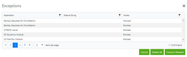 You can delete all previously set exceptions. This will enable entitlement group’s users access to ALL applications until an application is added to Allowed Applications list.