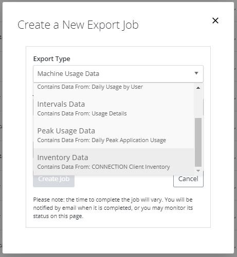 The CONNECTION Client Inventory Report is now available as part of the Data Export.