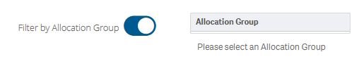 To see Allocation Groups in the report, simply use the Filter by Allocation Groups toggle in the Filters pane. In addition to allowing you to filter by Allocation Groups, this will also display Allocation Groups in the report.
