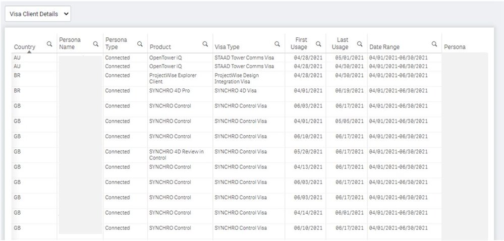 A new visual, Visa Client Details, has been added to the Visa Consumption Report. Scroll down to the Visa Usage Details visual is. Use the new drop-down to switch to the Visa Client Details visual. This list shows exactly which application's usage triggered the visa consumption for the quarter. It also shows the first and last usage date in the quarter.