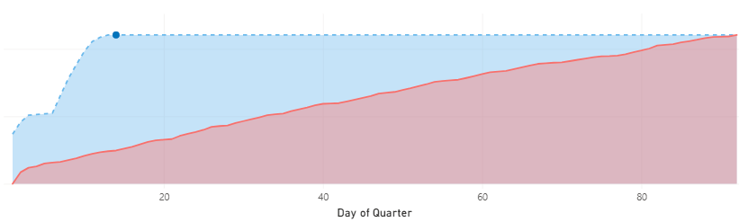 Marks where today's date is on the Current Quarter Spend line. |