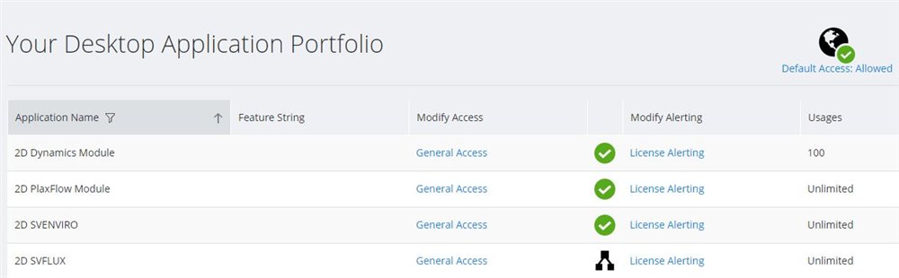 The Default Access icon in the top right indicates what the default access setting is for all Bentley applications in the selected country.