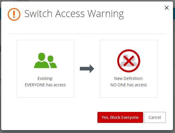Please note, that changing this setting to Access Denied will deny access to all products for every user in that entitlement country unless there are specific overrides in place to allow access for targeted products or users. To limit any user downtime, it is recommended that those overrides be in place before the Default Access setting is switched to Access Denied. A warning in Applications and Services will be displayed if all product use has been denied without any overrides.