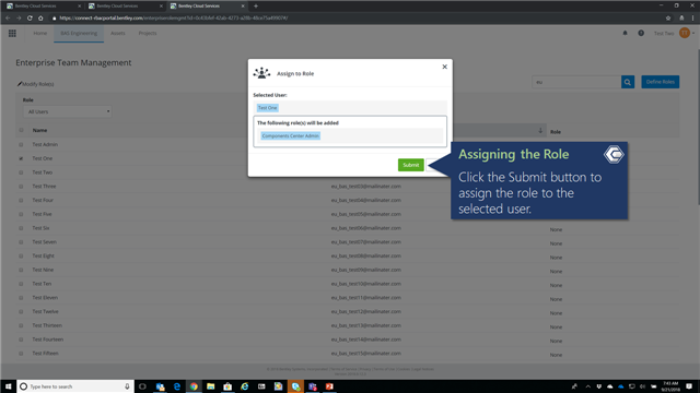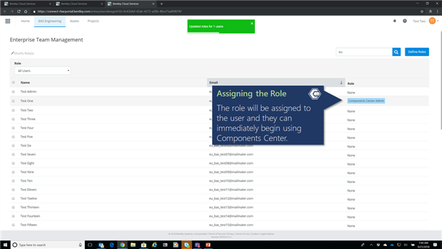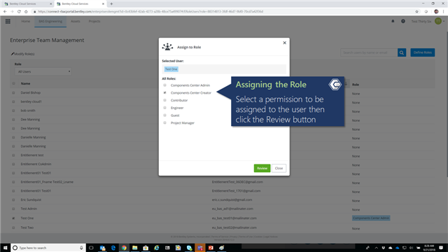 The role will be assigned to the user and they can immediately begin using Components Center.