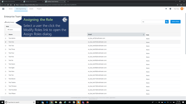 Select a user the click the Modify Roles link to open the Assign Roles dialog.