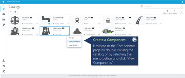 Navigate to the Catalogs components page by double clicking the catalog or by selecting the menu button and click “View Components”