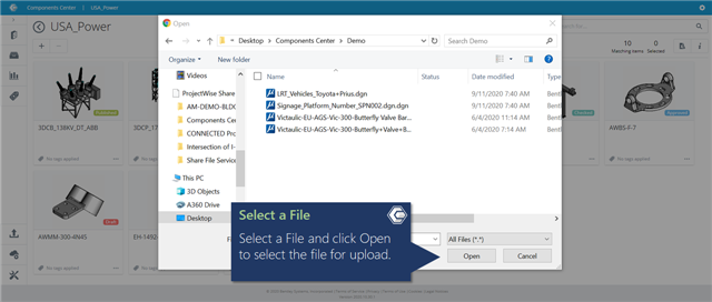 Select a File and click Open to select the file for upload.