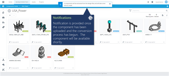 Notification is provided once the component has been uploaded and the conversion process has begun. The component will be available shortly.