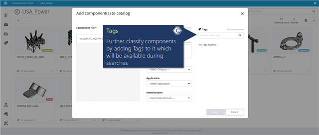 Further classify components by adding Tags to it which will be available during searches.