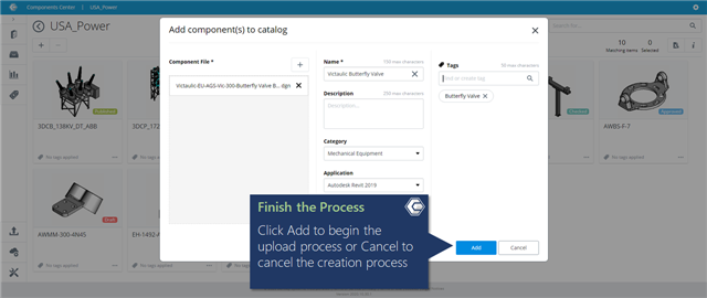 Click Add to begin the upload process or Cancel to cancel the creation process.