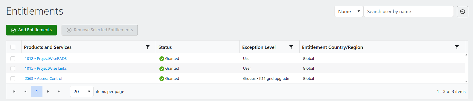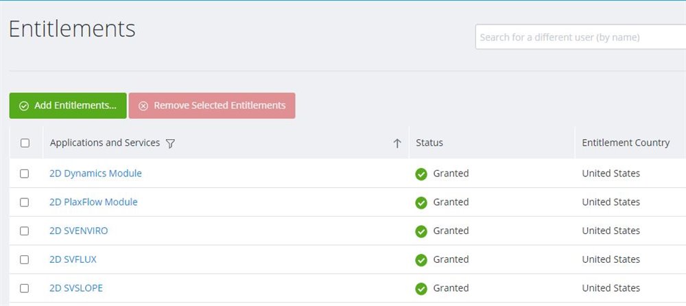 Click the green Add Entitlements... button and use the search bar to find products.