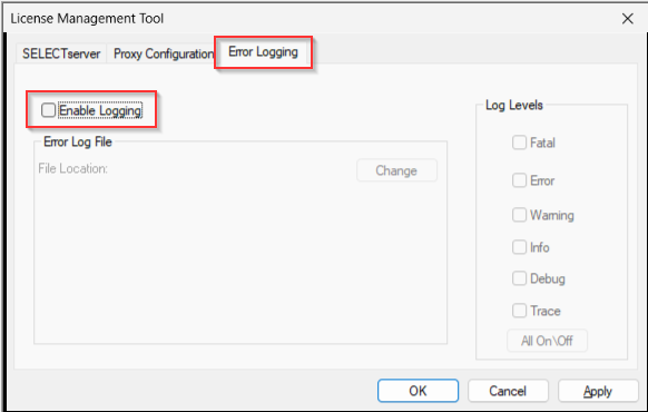 The following article provides steps for capturing communication data between a client computer and a SELECTserver for troubleshooting purposes. For information on error logging with CONNECT Licensing see https://bentleysystems.service-now.com/community?id=kb_article_view&sysparm_article=KB0019053#logging