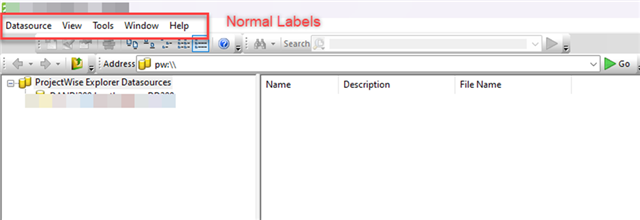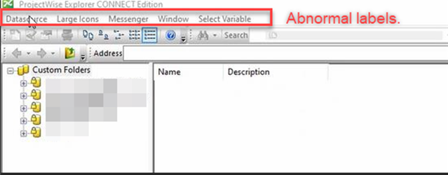 When opening ProjectWise Explorer abnormal labels display such as the example below.