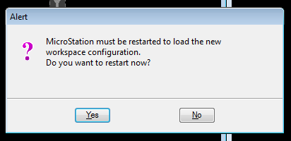 MicroStation must be restarted to load the new workspace configuration. Do you want to restart now?