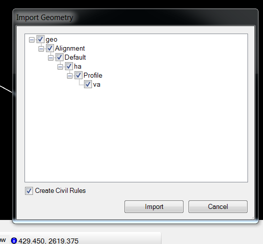 Create Horizontal & Vertical alignment in MXRoad, Inroads, Powercivil, then by using Open Roads Technology, Civil Tools > General Geometry > Import Geometry, both horizontal and vertical profile as well.