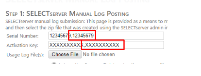 Marque esta URL para futuras referencias y utilícela en lugar del enlace del sitio de administración de SELECTserver. Al seguir el enlace anterior, rellena correctamente los campos Número de serie y Clave de activación con un valor cada uno.