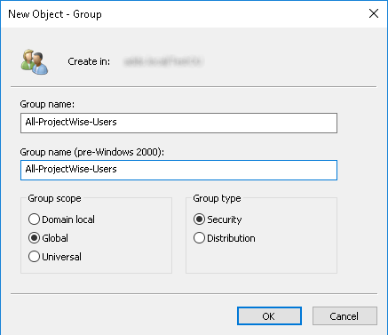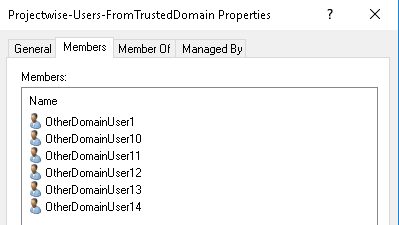 2) Create a security group for your ProjectWise users in Active Directory for the trusted external domain.