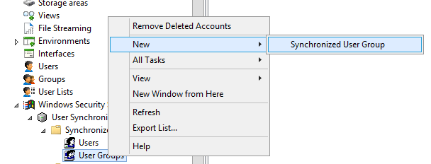 2) Right click on ‘User Groups’. Select ‘New > Synchronized User Group’.