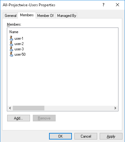 6) Create a security group for your ProjectWise users in Active Directory, then add users to this group.