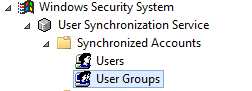 1) Expand the menus ‘Windows Security Service’ and ‘Synchronized Accounts’. Select ‘User groups’.