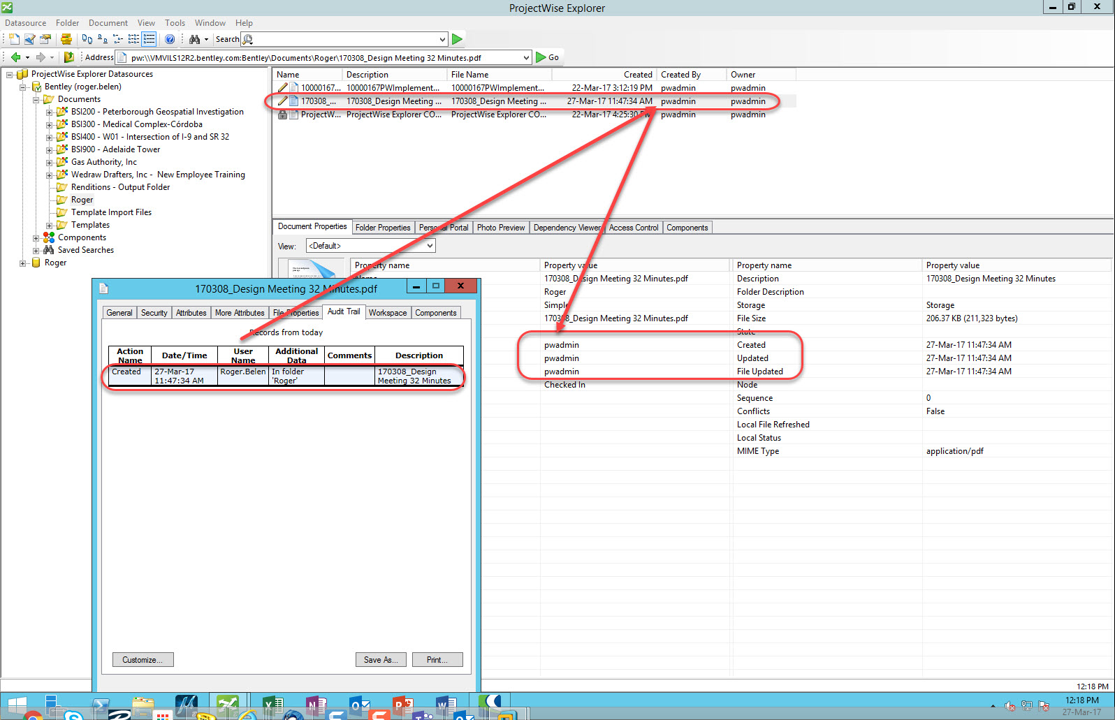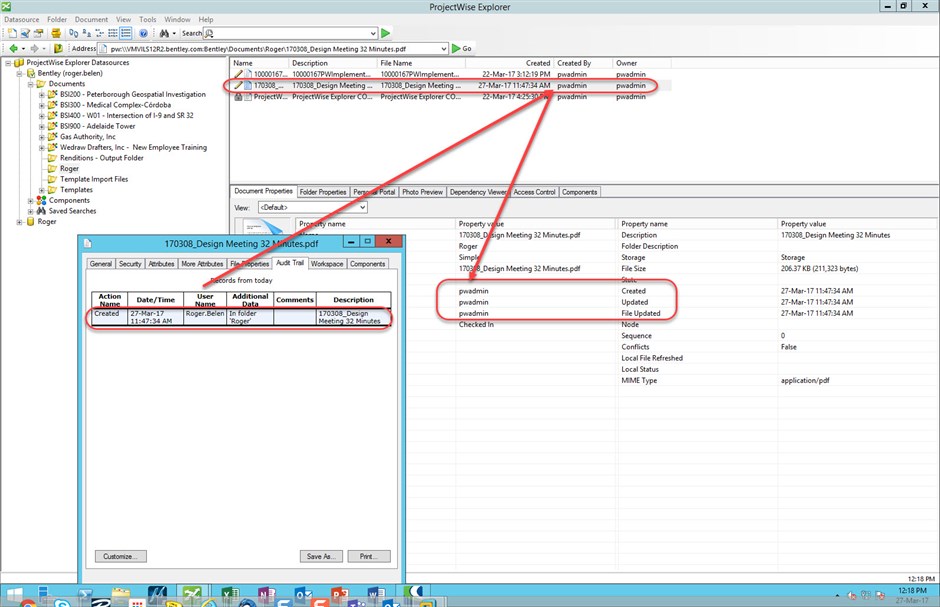 The Created By information from the Document Properties and Audit Trail information logs different user