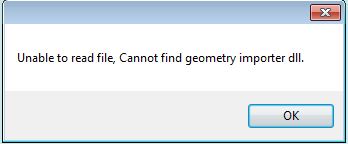 Choosing the General Geometry>Import Geometry to import an ALG file gives the error message "Unable to read file, Cannot find geometry importer dll."
