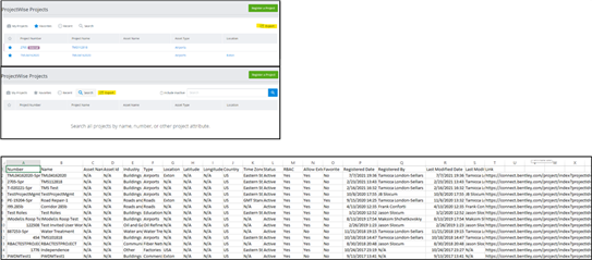 So exportieren Sie eine Liste aller in Ihrem Unternehmen registrierten ProjectWise-Projekte. Auch Administratoren und Co-Administratoren können die Liste der Projekte exportieren.