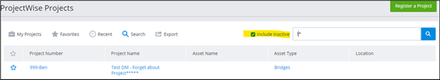 - Der Projektstatus wurde von einem Administrator in den Projekteigenschaften auf "Inaktiv" gesetzt. Wenn der Status auf inaktiv gesetzt wird, wird das Projekt bei der Suche nicht mehr angezeigt. Das Projekt ist weiterhin über die URL zugänglich.