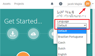 Wählen Sie die gewünschte Anzeigesprache aus der Dropdown-Liste in Ihrem Profilbereich in der oberen rechten Ecke: