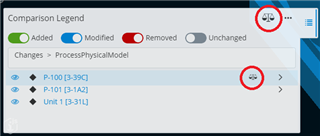 The same ability to do a side-by-side comparison of modified elements is still available. It can be accessed by using the comparison button in the header of the widget after selecting an element in the view, or with the comparison button that is displayed when the element is selected in the comparison legend: