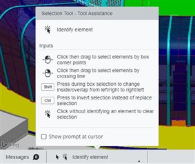 Many tools in the Design Review app have options to make them more efficient to use for you to complete your tasks. The problem is many of these options are "hidden" or not obvious to new users as they require the use of modifiers or specific actions. While these workflows are documented in our [[help | Help Guide]] this can be inconvenient for you when you are in the middle of a review. To help explain how to take advantage of these advanced options we are introducing Tool Assistance. when you select a tool you will see a tool prompt on the status bar describing the action you need to take to use the tool. if you click on the prompt a Tool Assistance popup will now appear explaining the other options that are available that you may find useful.