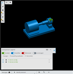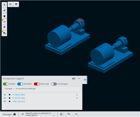 You may also turn on/off the display of a change type using the color-coded toggles. To visualize the changes easier, we can turn off Unchanged elements with the toggle, causing the view to hide those unchanged elements: