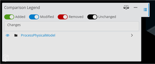 Notice that a breadcrumb is shown to let you know which changes are being inspected. In the image above, you can see that you are currently looking at the changed elements in the "ProcessPhysicalModel" model. The path on the breadcrumb is clickable to let you go back in the hierarchy. The changed elements may have child elements. If that is the case, the ">" icon is also displayed to the right of the element to let you inspect the changes further: