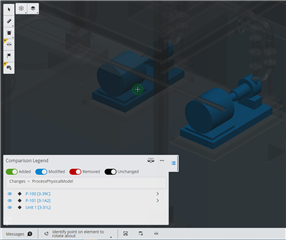 Understanding change allows your reviews to be more effective as you can focus your efforts on the appropriate areas of the project. You can now compare a previous named version with your current session to visualize and inspect what has changed between the 2 version. After selecting a version to compare the model will be color coded to display what has been added, modified removed or unchanged between the version. You can also select modified elements to view the specifics of how the element has changed whether it be a physical change or modification to its attribution.