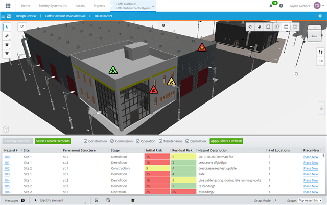 iTwin Design Review can now be integrated with SafetiBase to visualize the location of health and safety hazards within the model. This feature can be accessed and configured from the Design Review backstage to link to your SafetiBase repository.