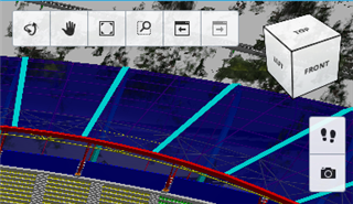 To improve usability and consistency with other Bentley products, we have updated navigation tools layout. The horizontal toolbar now includes the Rotate, Pan, Fit, Window Area, View Previous and View Next tools The vertical toolbar includes the Walk and Camera On/Off tools with navigation cube in corner.