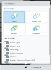 A new View Display options widget has been added to the bottom toolbar that allows the user to select from various Render Modes and View Attributes to adjust the display of the model.